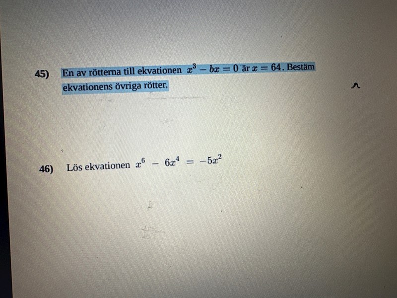Eftersom vi vet att en lösning är 64, vad kan då den andra vara?
