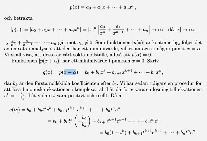 "Låt e vara en lösning till ekvationen ". Där står det att .