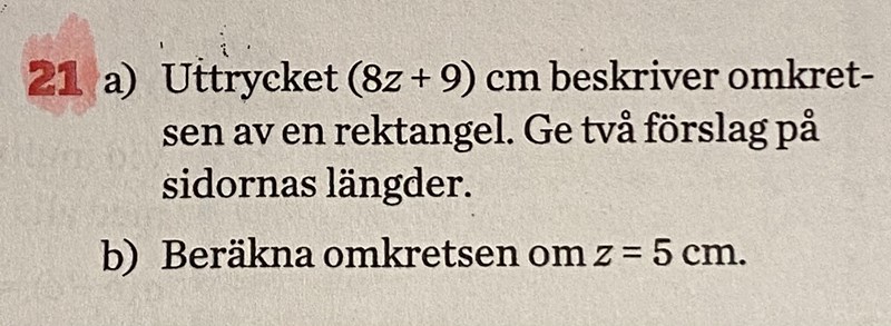 Kan du skriva ett uttryck för nedanstående rektangels omkrets?