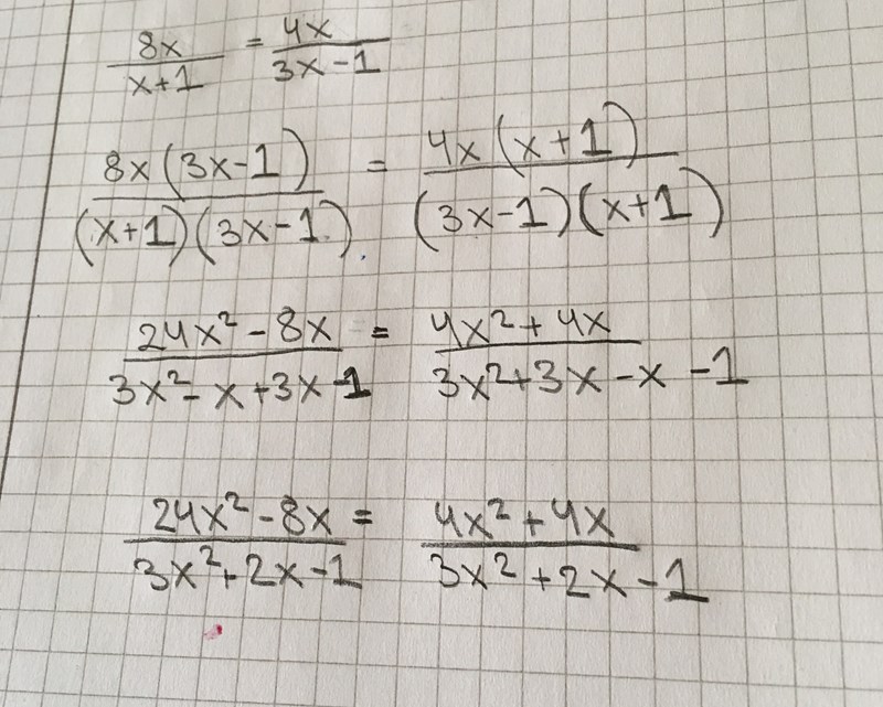 Nej målet är att bli av med nämnarna. Du har förlängt med nämnarna men jag ville att du skulle multiplicera med nämnarna, dvs multiplicera båda täljarna först med ena nämnaren, sedan med den andra nämnaren.