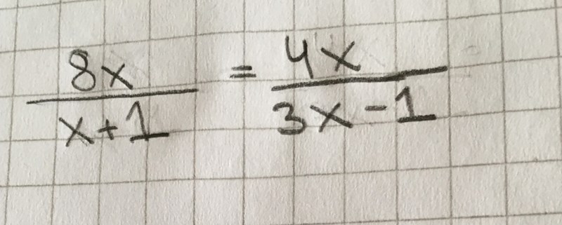 Börja med att multiplicera hela ekvationen först med ena nämnaren, sedan med andra nämnaren.