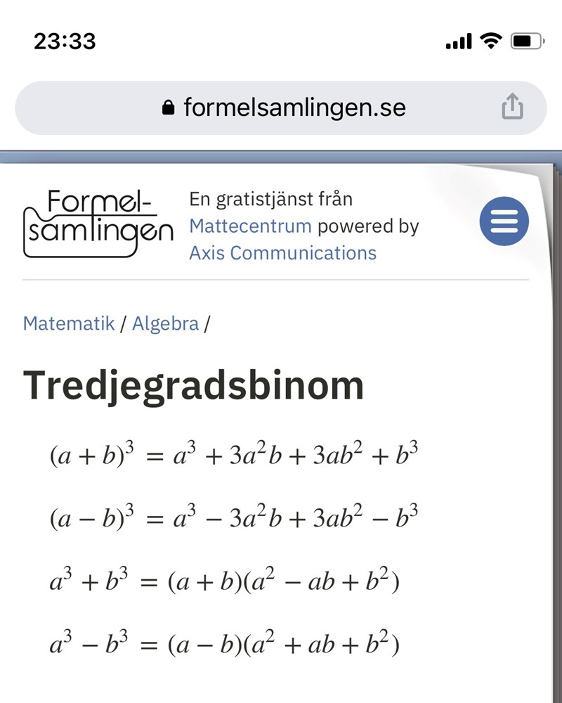 Nämnaren skulle jag nog försökt skriva om med formeln längst ned: