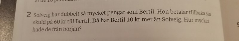Glöm inte att Solveig har dubbelt så mycket pengar som Bertil från början.