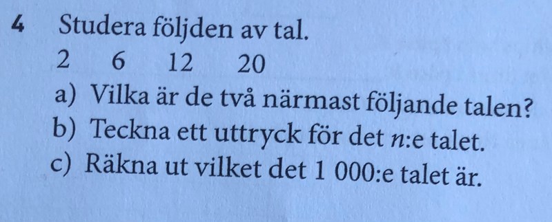 Om du har löst a-uppgiften måste du ha kommit fram till hur som man bildar nästa tal i följden.
