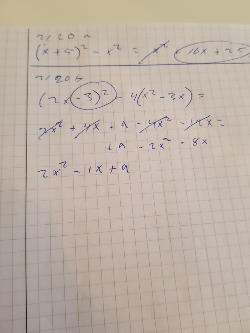 yes, kollar på vänster parentes med kvadreringsregeln. Vänster parentes minus höger ger 9 om jag läser detta rätt. Återkommer