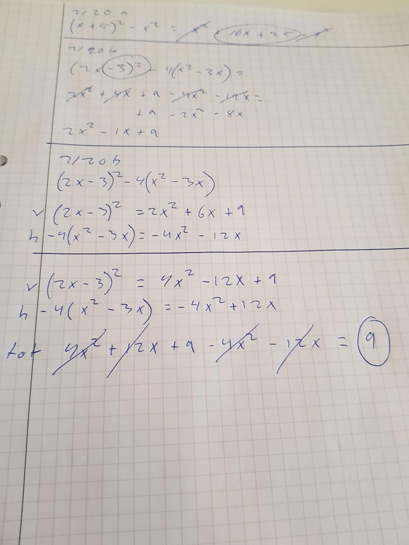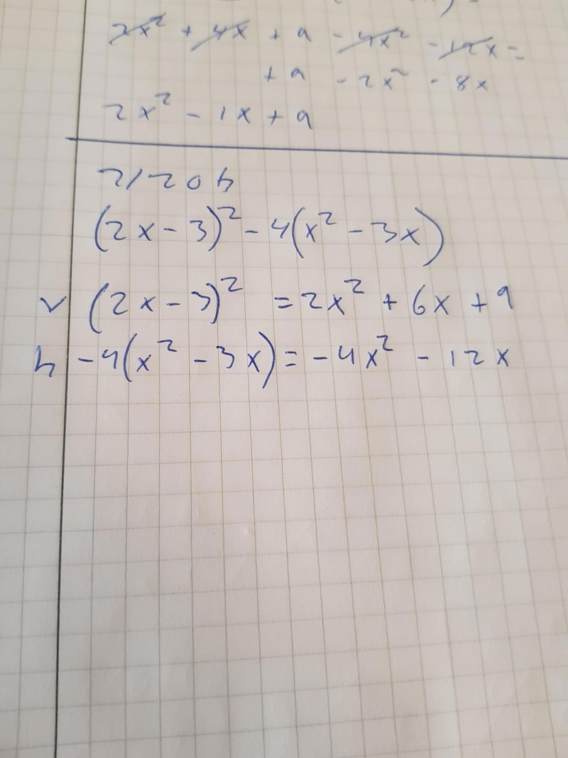 Det är fortfarande inte korrekt, den första parentesen blir: (2x-3)2=4x2-12x+9