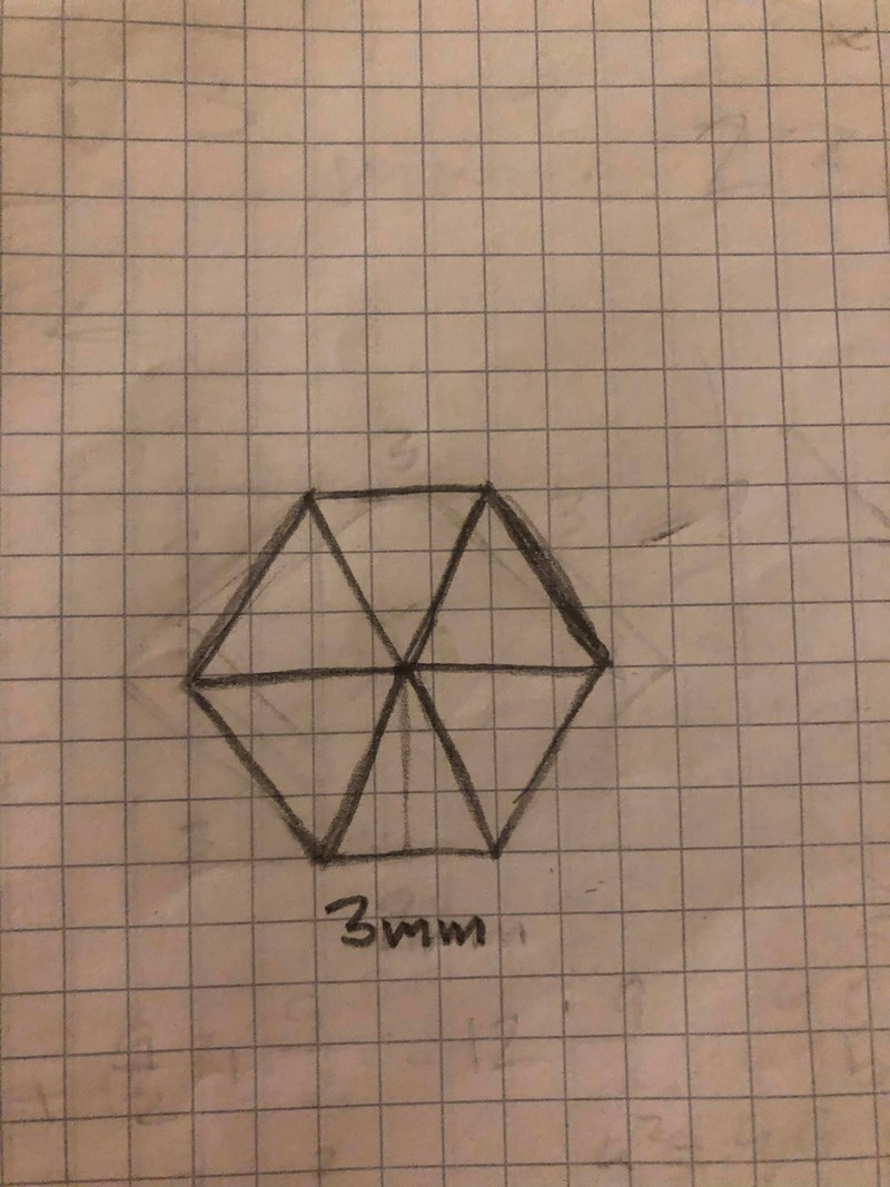 Vilken rolig uppgift! Mitt förslag är att du börjar med att rita en figur. En hexagon kan delas in i sex trianglar. Rita en figur, och lägg in en bild här i tråden, så kikar vi på den tillsammans! :)