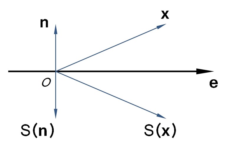 Om du har en rät linje, riktning genom origo (fet horisontell linje) så är en spegling, S(x), definierad som