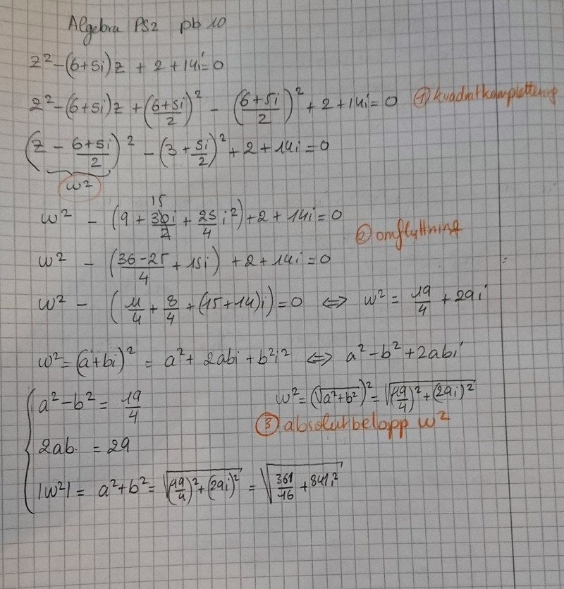 Jag har försökt att först kvadratkomplettera och sedan bygga en ekvation system med reella, imaginära och absolutbelopp.