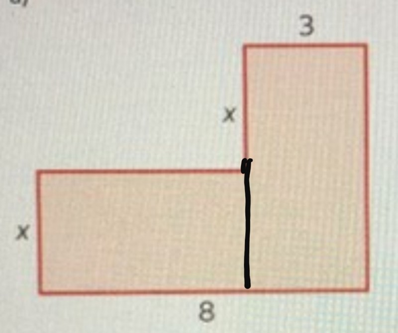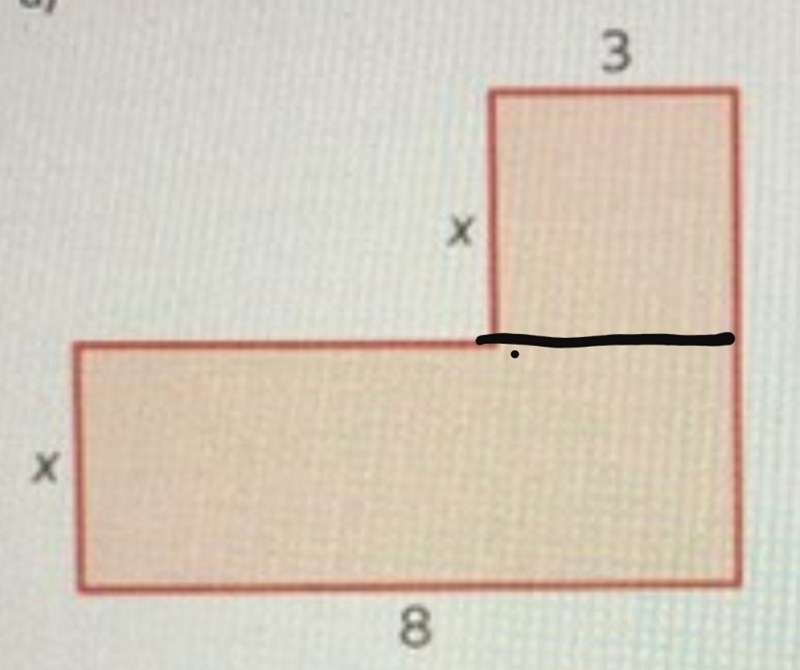 Ok, om vi kollar på den första rektangeln så är den svarta linjen 3 och dem andra på sidorna variabler alltså X och i den andra rektangeln så är den högra sidan en variabel (X) samma sak med den vänstra, och den övre är 8-3 tror jag.