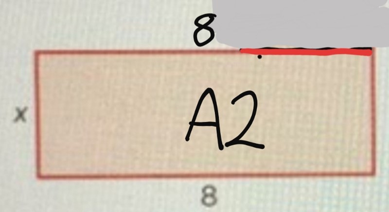 6. Är du med på att den undre rektangeln därför har arean A2 = 8*x?