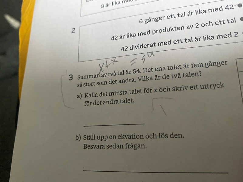 Med andra ord man skall ta det mindre talet x och multiplicera med 5.