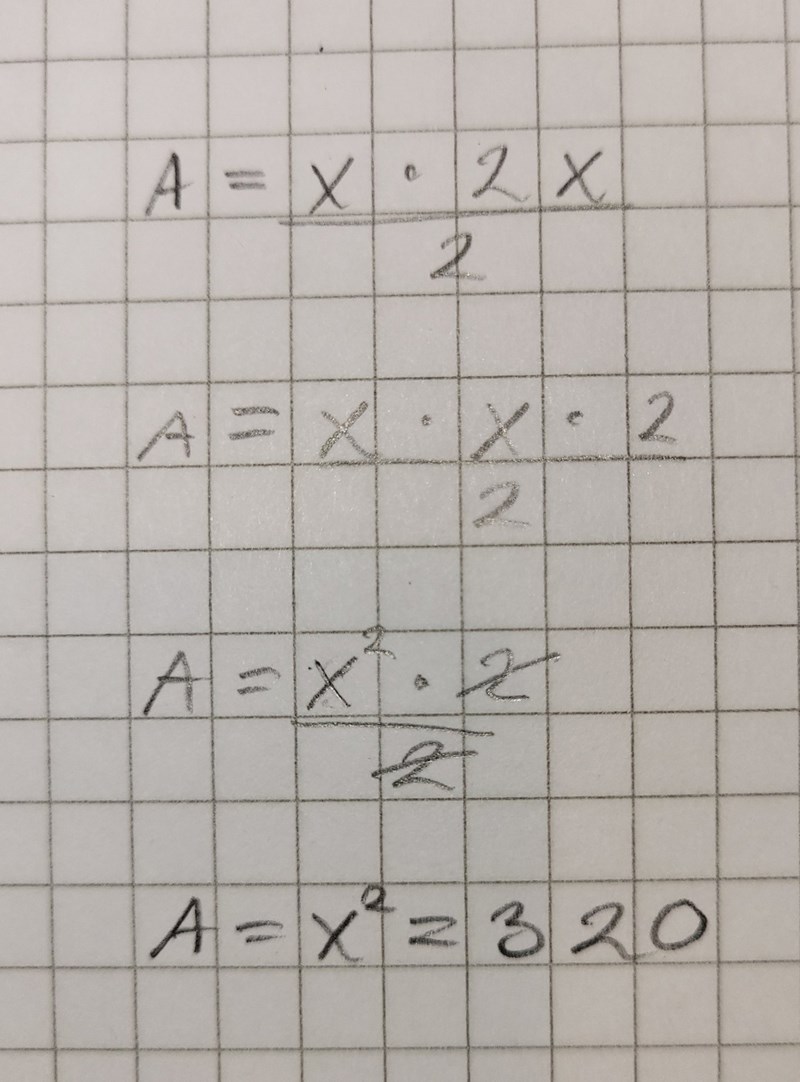 Skriv uttrycket för arean. Kan du få in x2 = 320 någonstans?