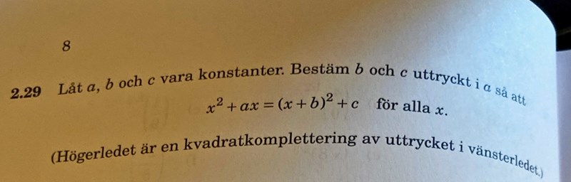 Koefficienten för x-termen måste vara lika i VL och HL. Konstanttermen måste vara lika i VL och HL. Kommer du vidare?