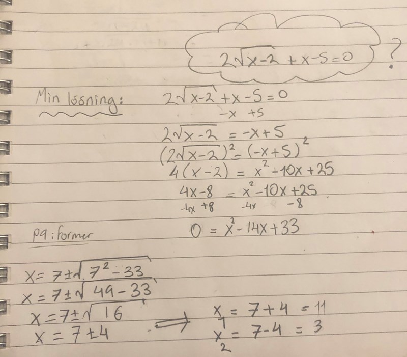 Jroth skrev:Ibland när man kvadrerar infinner sig falska rötter.