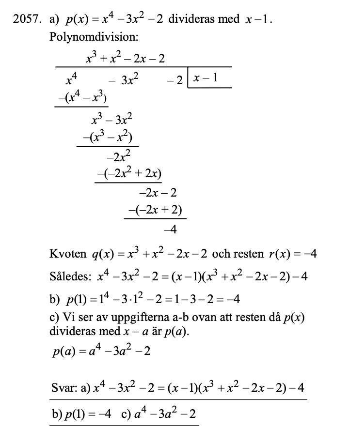 a) Dividera p(x) = x4-3x2-2 med x-1 och skriv på formen p(x) = (x-a)q(x) + r.