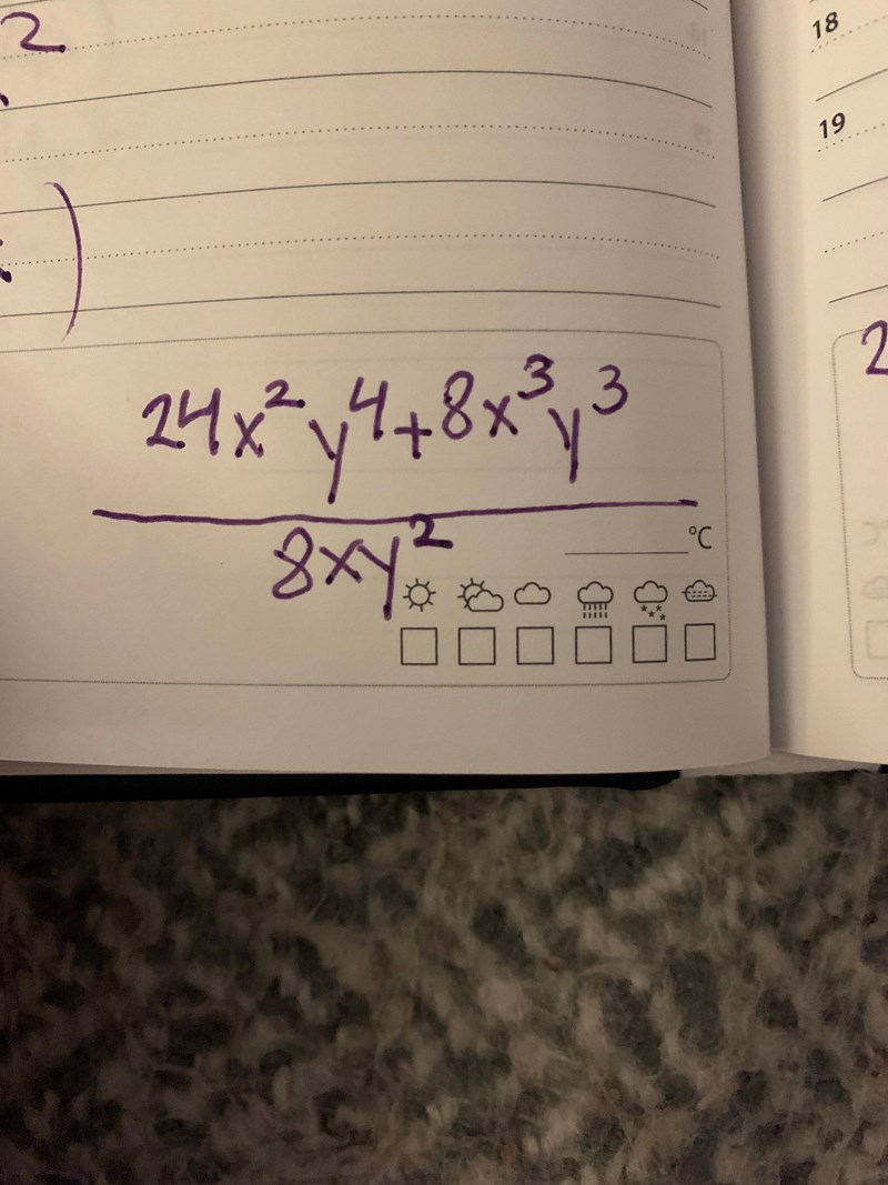 Jag läste att jag kunde bryta ut 8xy^2 men jag förstår inte hur jag ska göra det och hur det ser ut på papper nedskrivet , jag har använt PhotoMath appen och där står det också att man ska ”bryta ut”. Förstår inte hur det fungerar