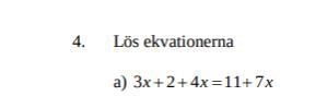 Lös ekvationen 3x + 2 + 4x = 11 + 7x