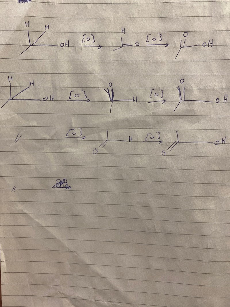 Blir det fel om man skriver reaktanter av oxidering av alkoholer på olika sätt? Alltså lärare har skrivit det som första raden och jag skrev den andra