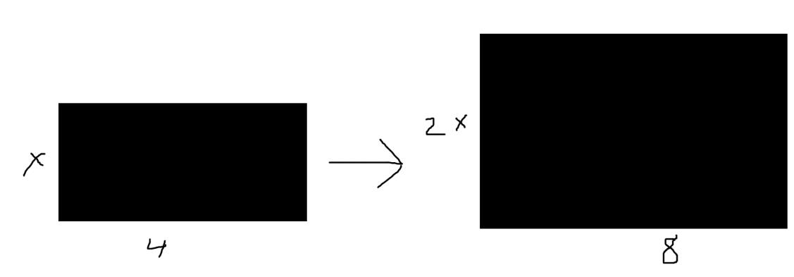 Aloosher skrev:Kakorna har samma form, detta betyder att om du dubblar längden på en kaka kommer du också dubbla höjden som följande: