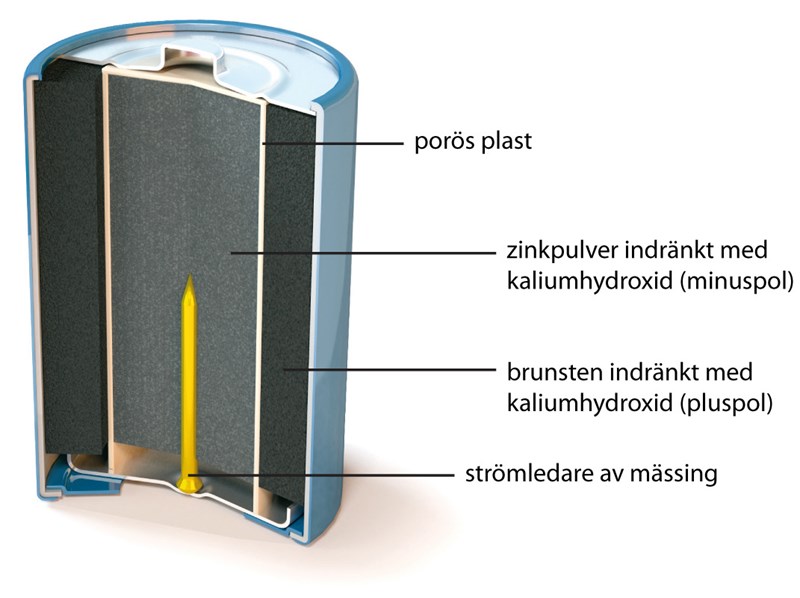 varför har man en porös plast i det alkaliska batterier medan man inte har det i brunstensbatterier ?