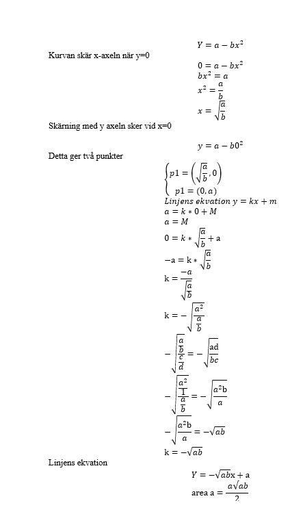 · Rita upp kurvan y = 4 - x^2 ; x > 0 Rita sedan en linje mellan kurvans skärningspunkt