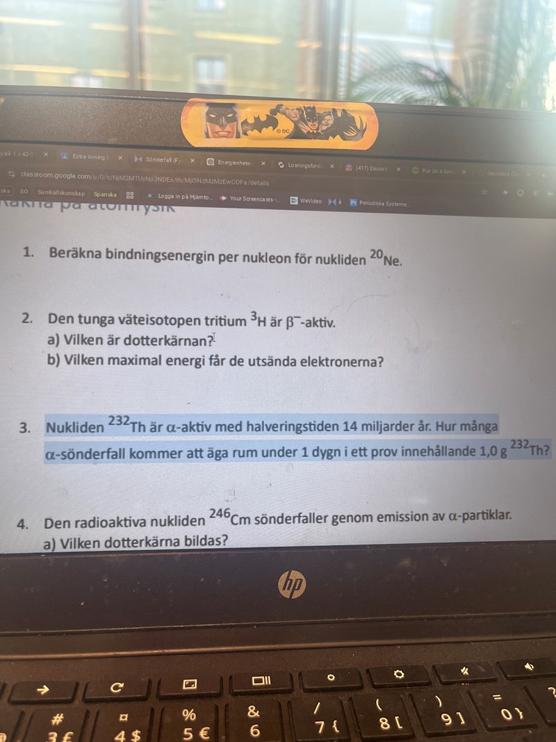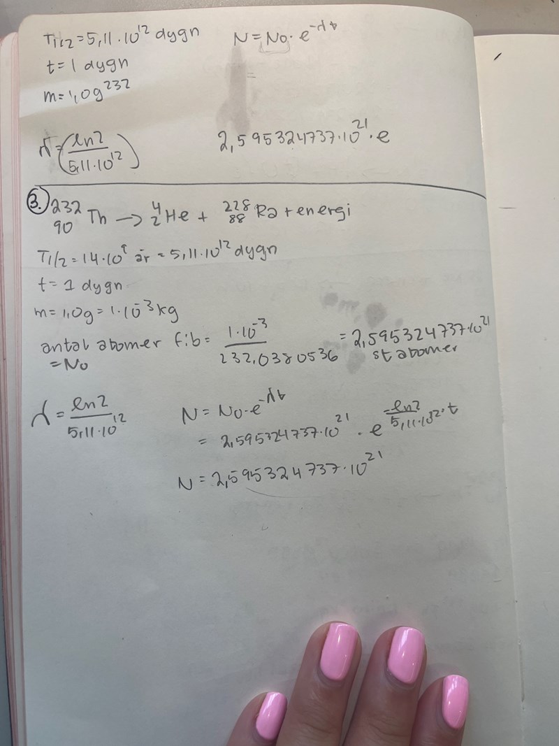Antalet toriumatomer i en gram torium kan du till exempel beräkna ur Avogadros tal. Eller från att atommassan är 232u. Det är nog tillräckligt noga, och det stämmer med din N0.