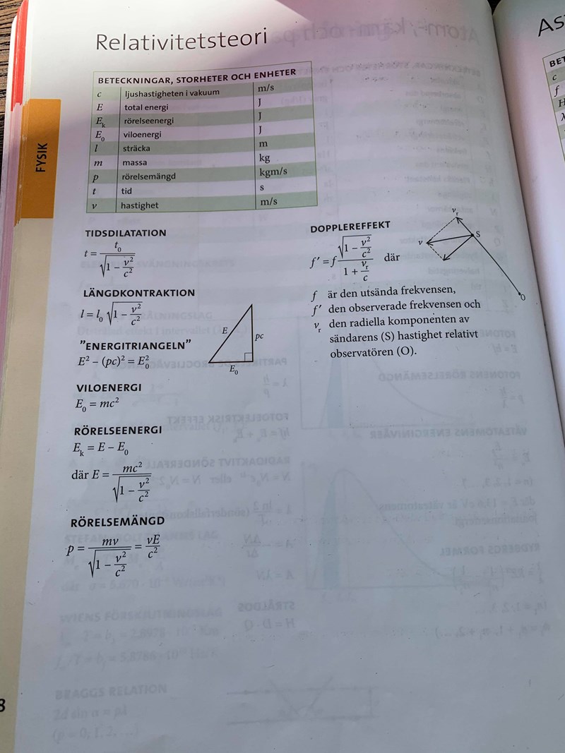 Hej! Jag funderar även ifall det är som så att man (åtminstone för högre betyg) kunna härleda formeln för total energi, enligt bild nedan? Jag förstår inte riktigt hur i sådana fall man ska veta att vi börja med p=ymv och sedan att vi ska sätta att p2c2 ger y2m2c2 . Hur man ska veta att vi ska multiplicera med p2c2 över huvudtaget? Sedan frostätter härledningen med att den totala energin i kvadrat är uttrycket i kvadrat.. osv tills vi får att