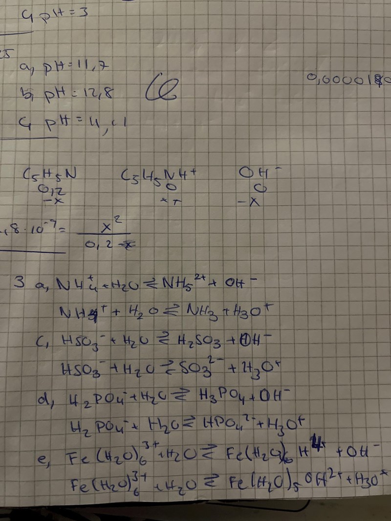 Skriv upp en reaktion för varje ämne med OH- / H+ (H3O+)