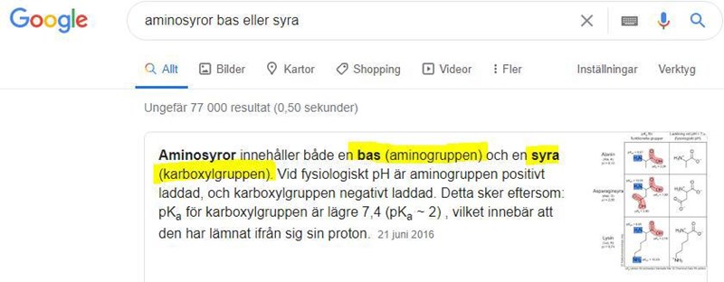 Googlar man en enkel fråga rakt av så producerar google nuförtiden mer eller mindre raka svar på dem.