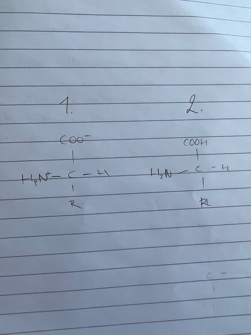 Hur skiljer sig dessa aminosyror från varandra? Är de samma, bara det att vätet har bytt plats? 2an skulle ju kunna vara en positiv jon men då skulle ju aminogruppen vara H3N istället?