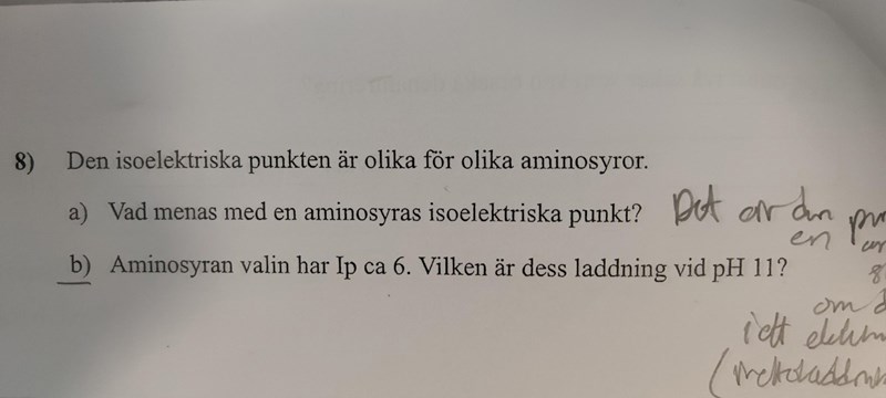 Kanske du menade det jag skrev ovanför? Men, ja pKa påverkar absolut, alla valinmolekyler kommer inte vara negativt laddade vid t.ex. pH 10. Men vid pH 11 kommer majoriteten/genomsnittsmolekylen vara negativt laddad.