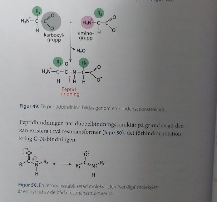Hej! Jag förstår inte detta med att resonansstabilisering uppstår i 2 former vid en dipeptidbindning, eller något sådant. Kan någon vara snäll och förklara? Varför uppstår resonansstabilsering från första början mellan N och O?