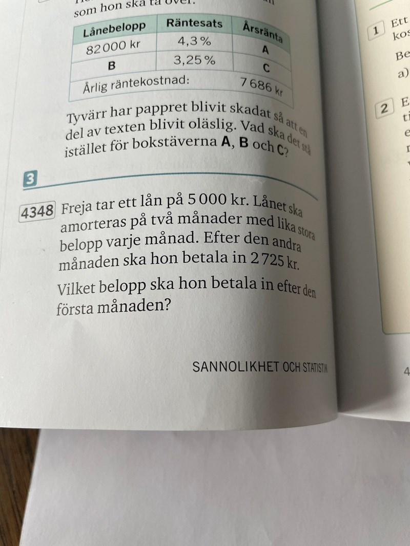 Sen stirrar jag bara på frågan och är inte med alls. Efter den andra månaden ska hon betala in 2725? Men lånet är ju betalt efter 2 månader? Varför kvarstår något till att börja med.