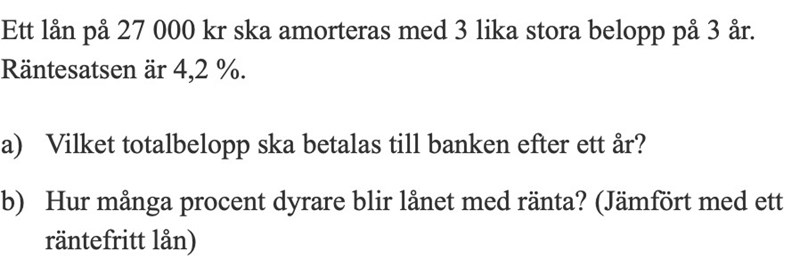 Hur stort är lånet andra året? Vad blir räntan? Hur mycket ska betalas i slutet av år 2?