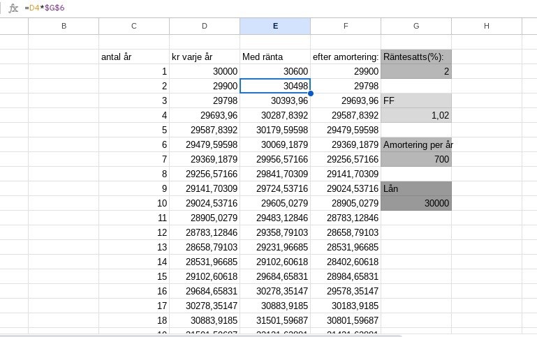 Är uppgiften att man ska betala en fix summa var år inkl ränta och amortering?
