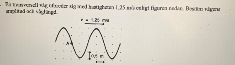 Jag fattar inte, har typ glömt hur man räknar ut amplituden. Jag tänkte (2-1)/2 men amplituden ska enligt facit bli 1m. Kan någon hjälpa snälla? :)