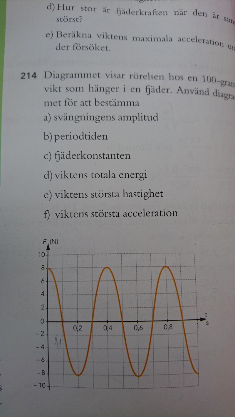 Jag fastnade på fråga A. Hur vet vi att amplitud är 8 cm, och inte 8mm?