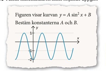 Jag försökte lösa A, genom att ta maxi-mini/2 men det blev fel i facit. Varför fungerar det på normala sinx kurvor men inte på Sin²x? och hur kan jag lösa den annars?