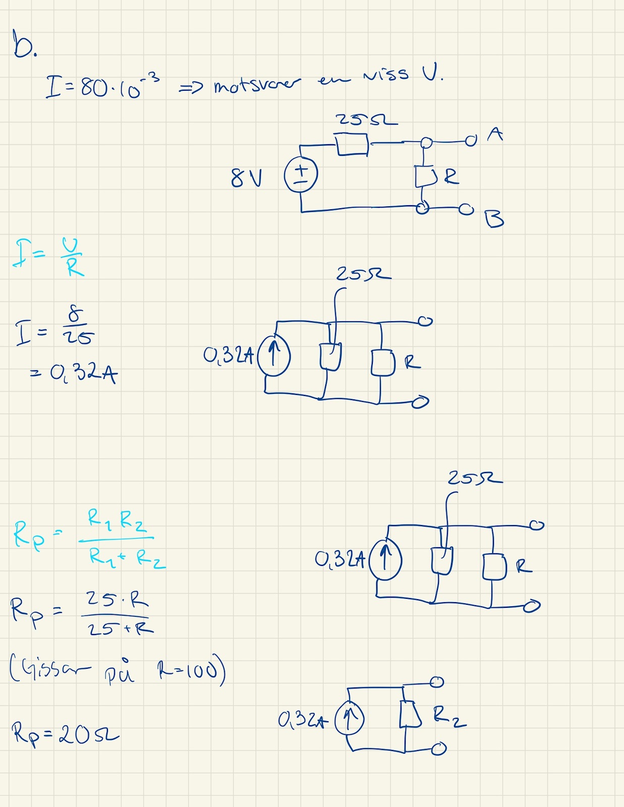 Den räcker för att räkna ut b. Du behöver inte göra om till strömkälla.