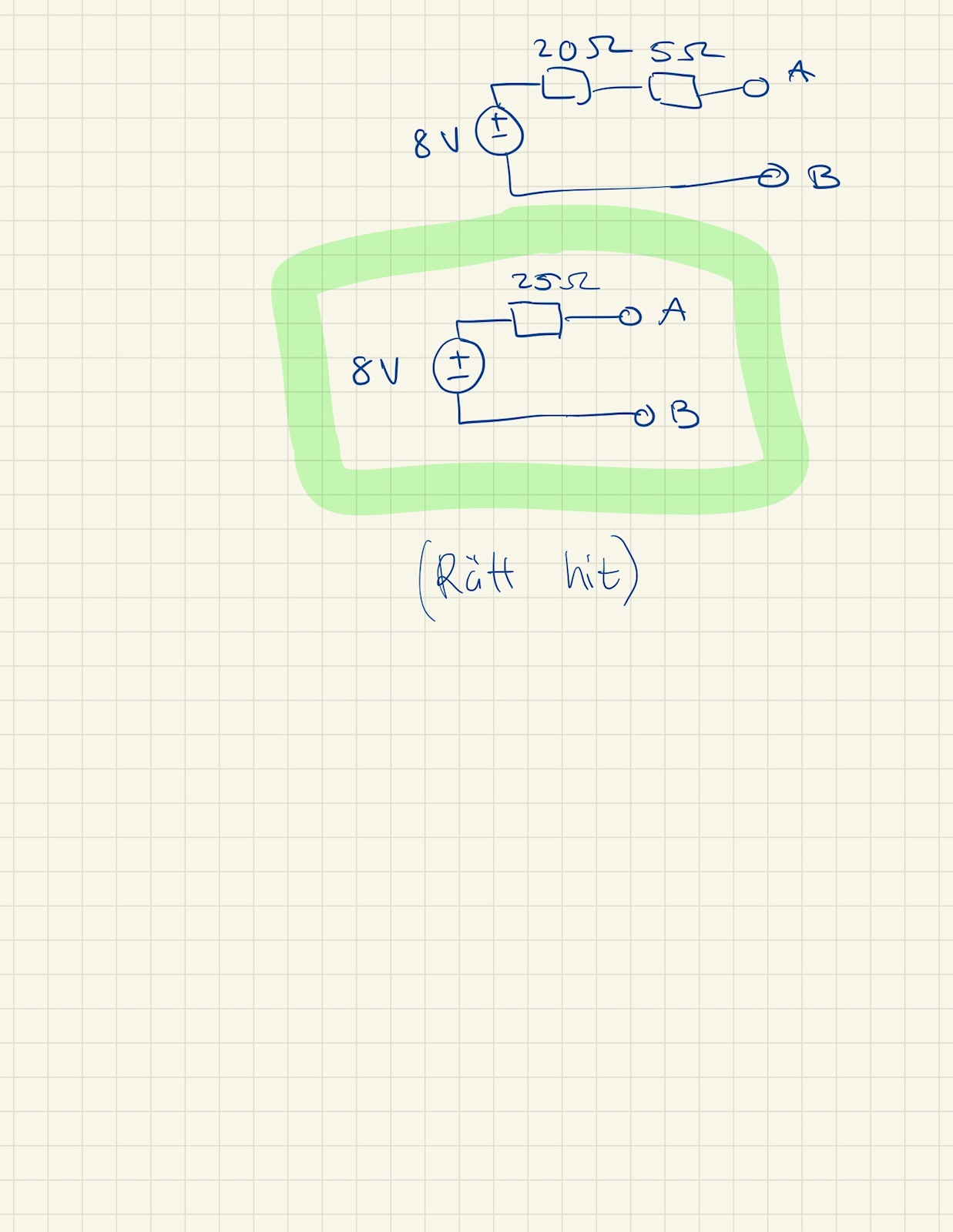 (Blir samma sak om du byter ut spänningskällan mot en strömkälla.)
