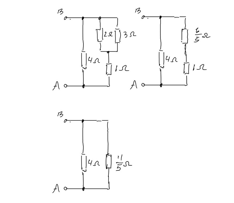Okej, vet att den gula inte stämmer då facit stämmer överens med den som du ritade tidigare. Men (upprepning utav min fråga) hur vet du att det är 4ohm motståndet som sitter i parallellkopplingen och inte 1ohms motståndet?