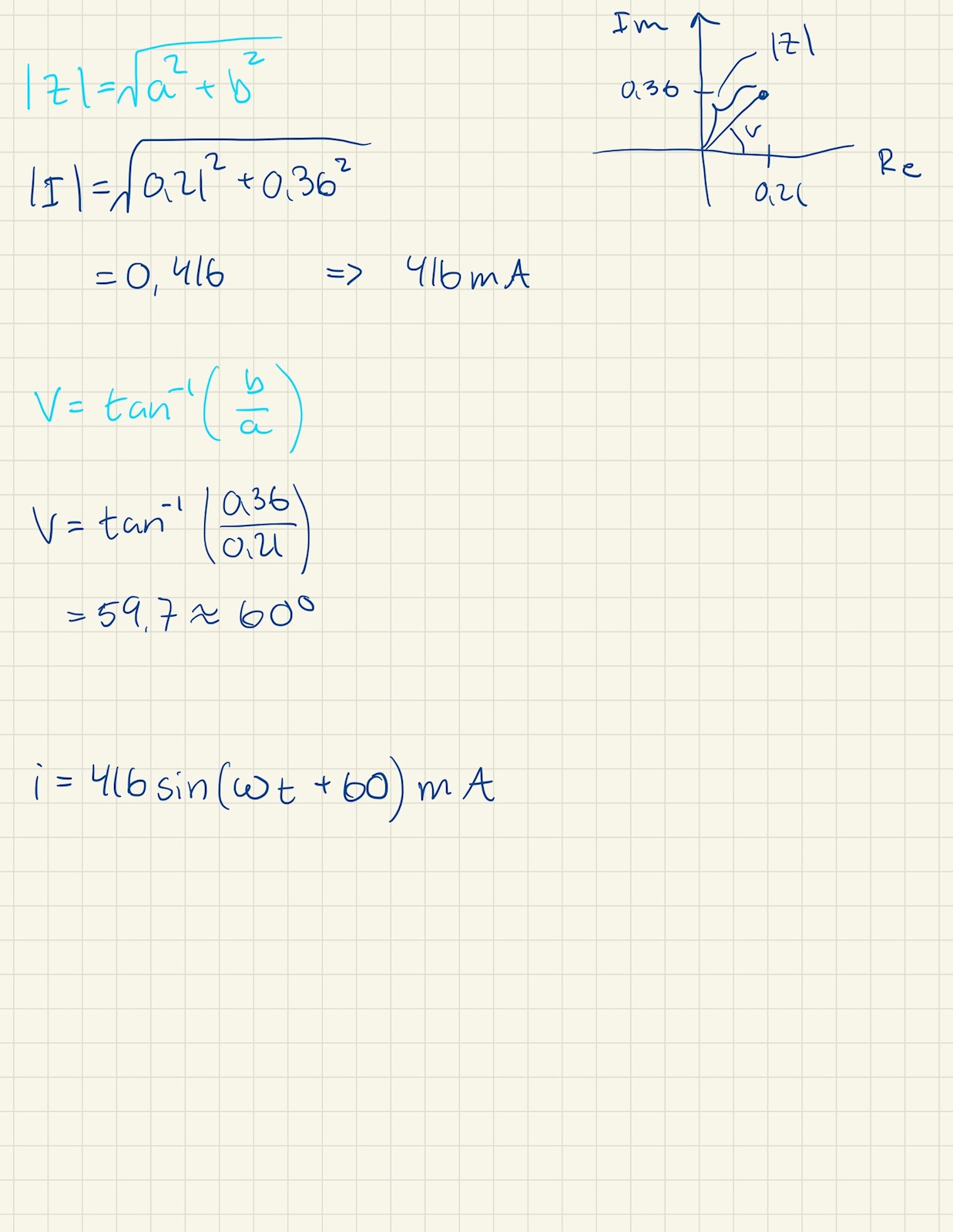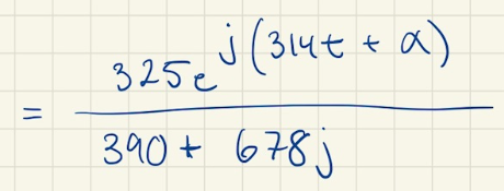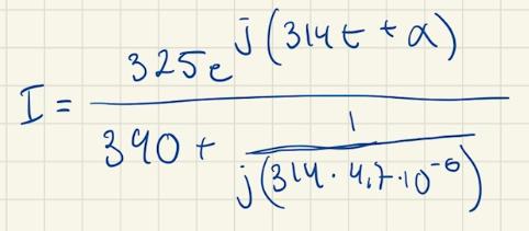 Till slut hamnar man i ett uttryck som liknar I = a + bj. Då får man amplitud och fasförskjutningen för strömmen ur detta.