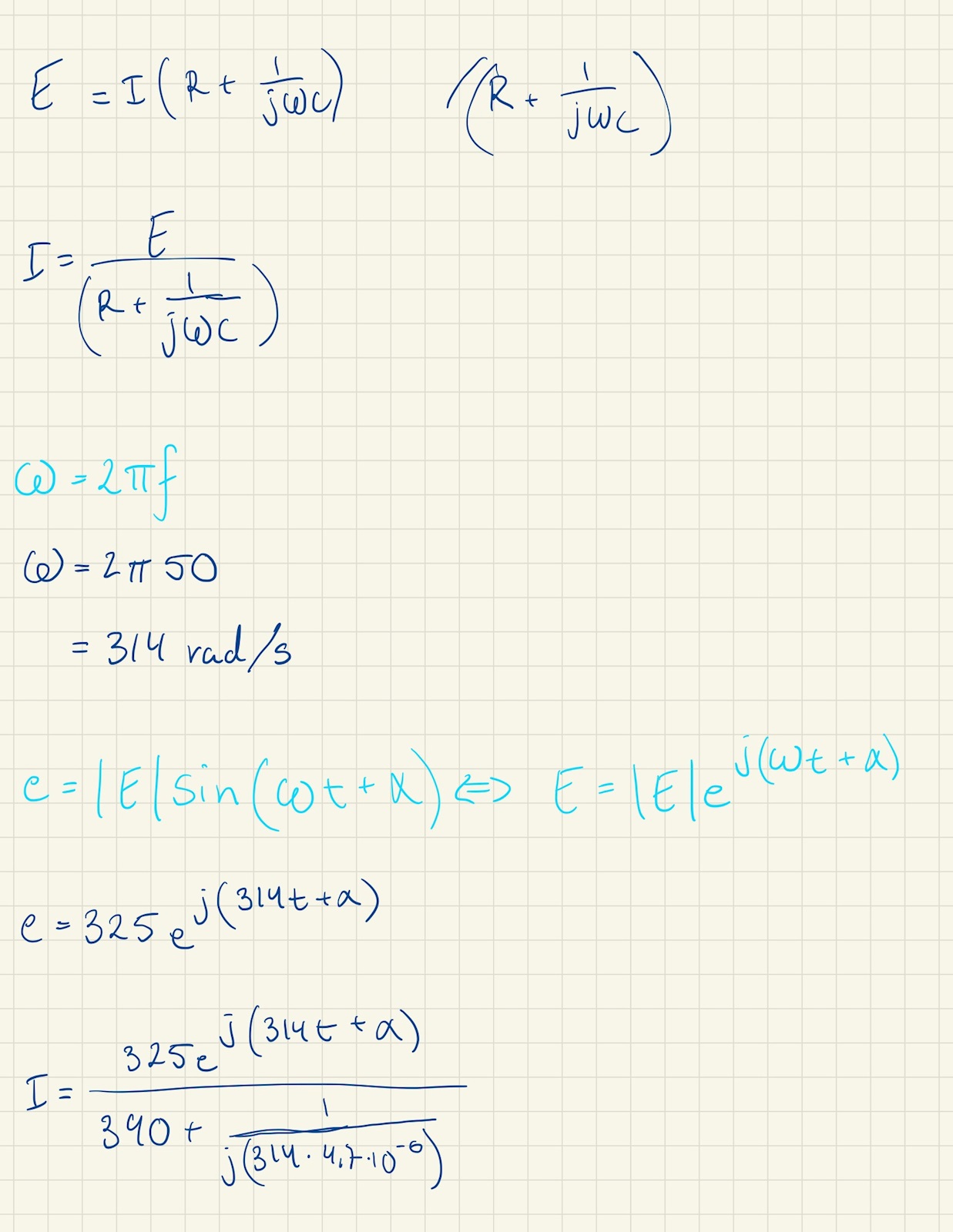 Analog elektronik, Beräkna momentanvärdesuttrycket för strömmen (komplexa metoden) (L.Bergström 9.1)