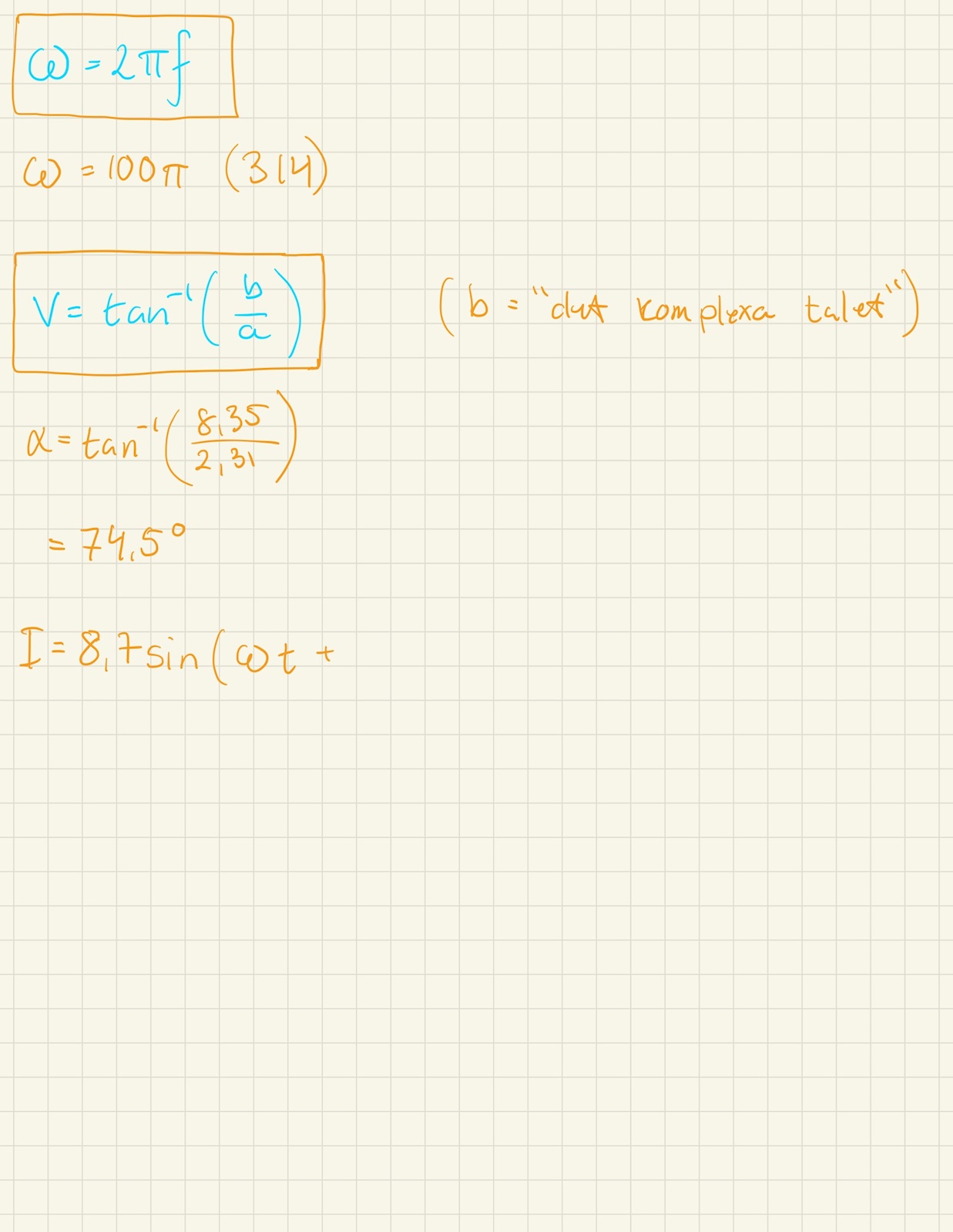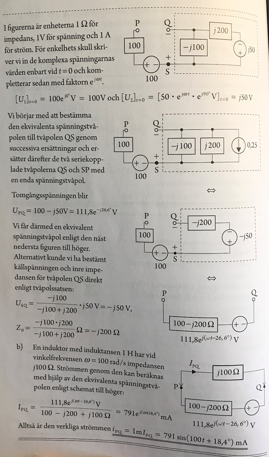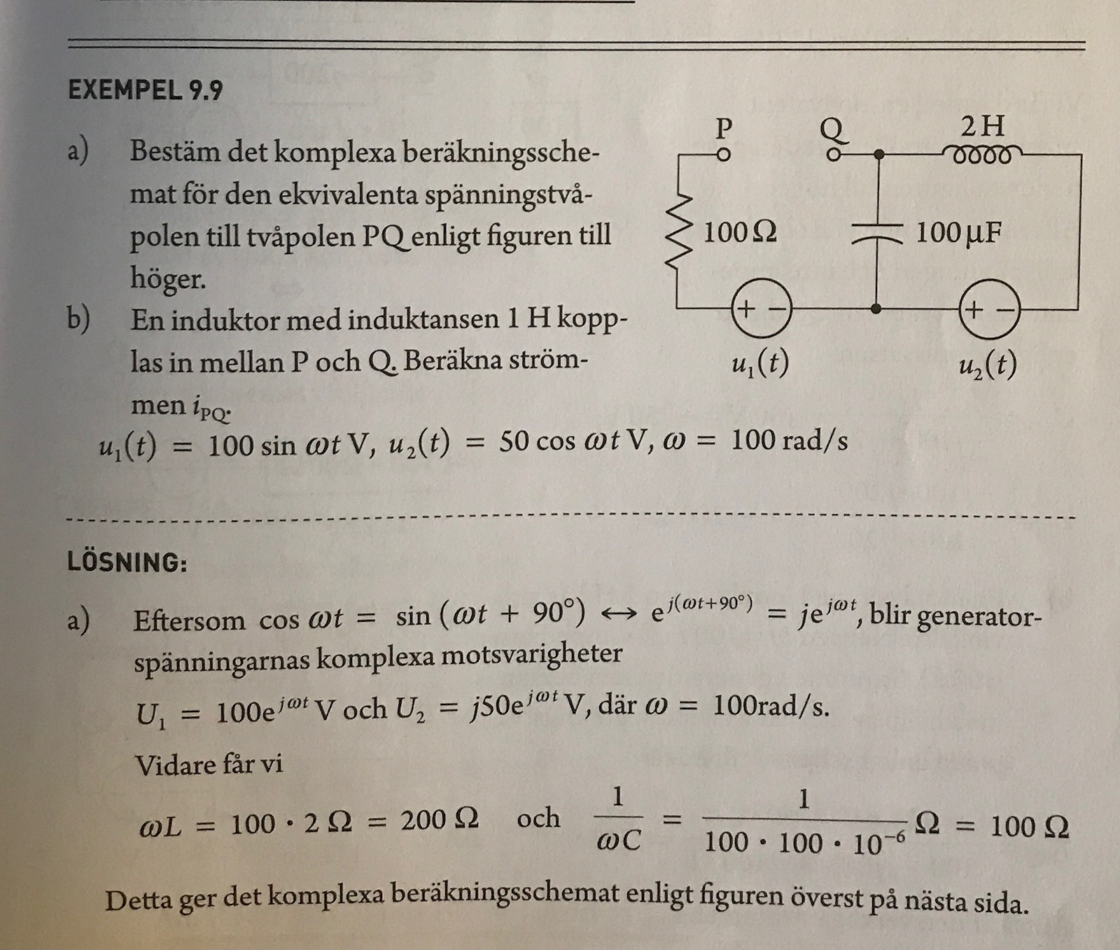 och eftersom uppgiften säger att spänningens faskonstant är noll (i boken), så blir
