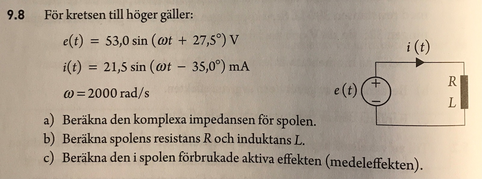 Analog elektronik, Beräkna spolens resistans och induktans (L.Bergström 9.8)