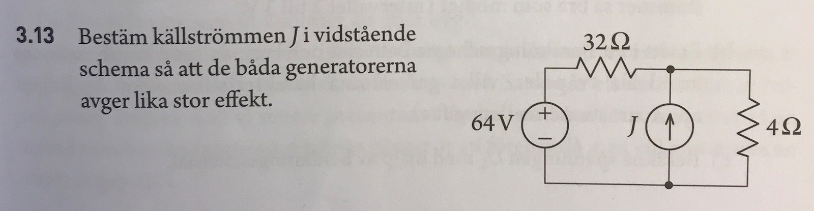kapa en andra ekvation som säger att strömkällans avgivna effekt är lika stor som spänningskällans avgivna effekt