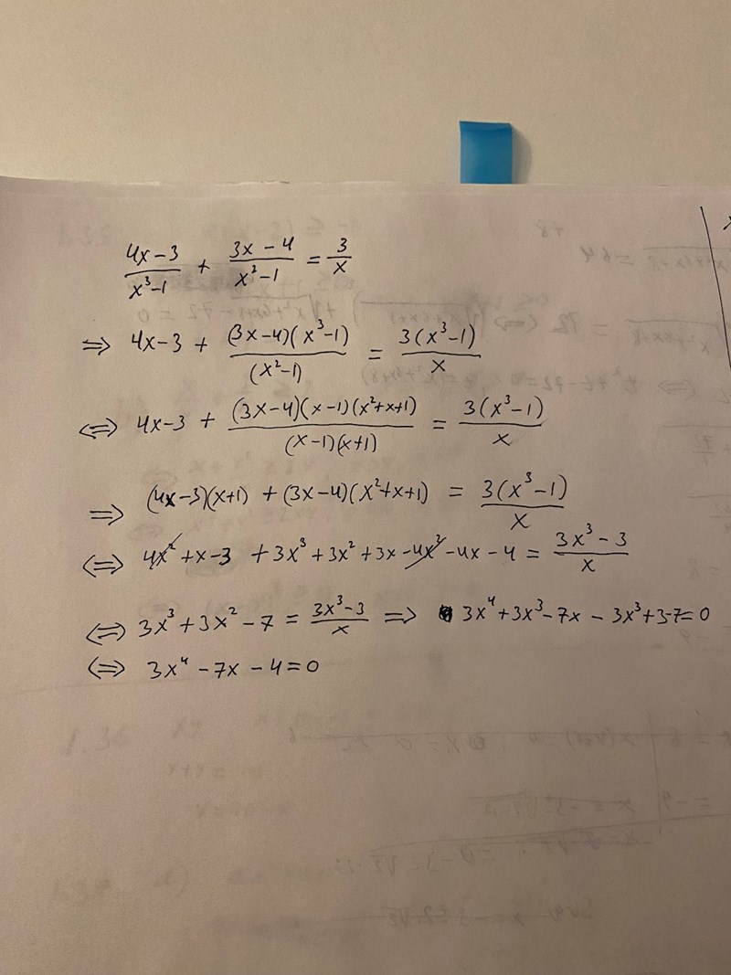 Okej jag förstår varför ni tycker det är enkelt. Jah glömde skriva i första termen i nämnaren att det ska stå -1 också. Alltså x^3 -1 i nämnaren på första termen