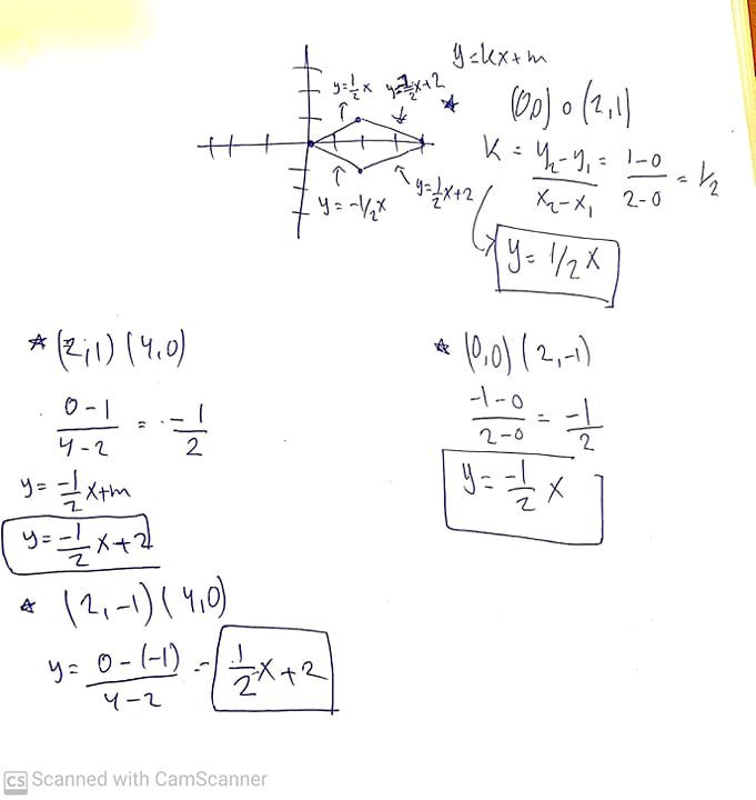 Vissa tentor ger dem ekvationer för linjer men i denna uppgift gav dem ingen ekvation utan man kan lösa det på något annat sätt.