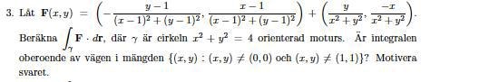 4: Om du inte känner till det (vilket är rimligt, jag kände mig inte hller helt säker) så får du se vad det betyder, eller parametrisera som de föreslår. Längs en cirkel runt origo är , integralen blir integralen av från 0 till , alltså